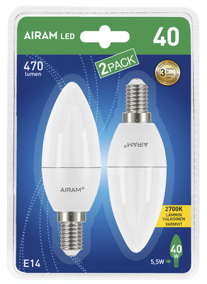 Lemputė AIRAM LED E14 C35 5W 2800K 2PACK