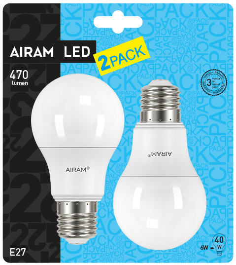 Lemputė AIRAM LED E27 A60 6W 2800K 2PACK
