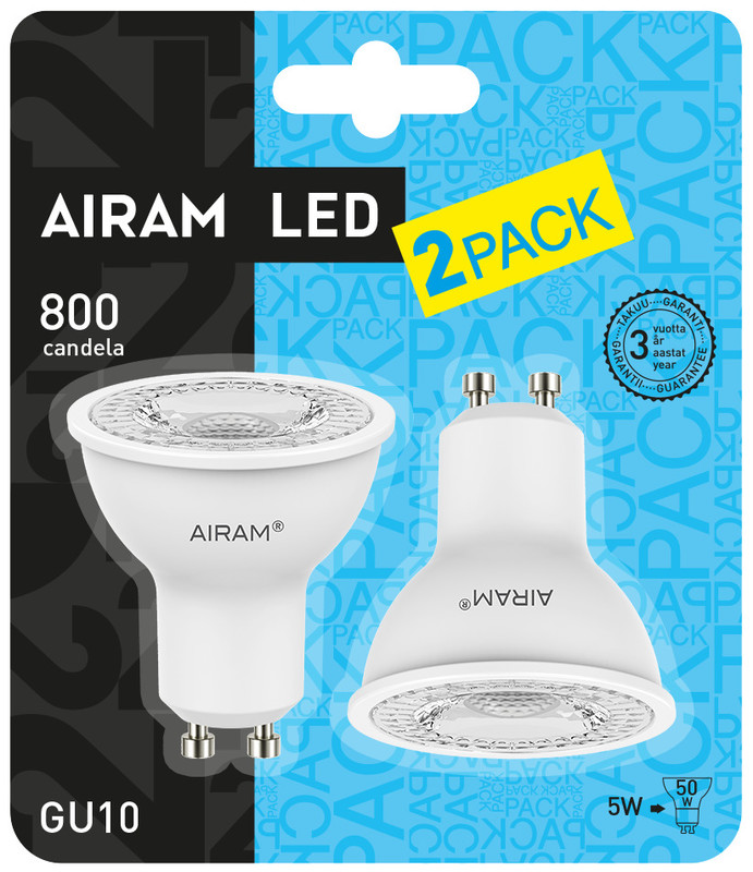 Lemputė AIRAM LED GU10 5W 2800K 2PACK