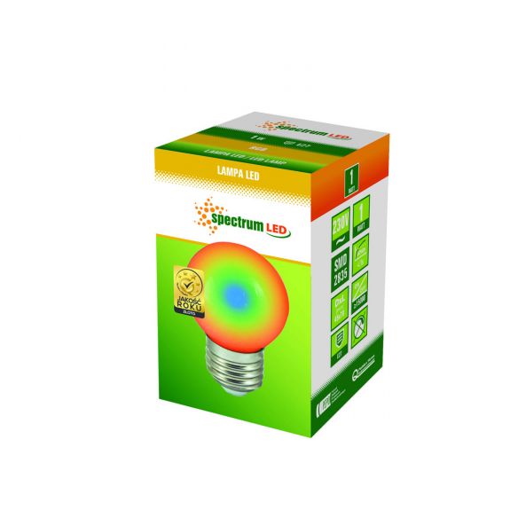 Lemputė LED E27 G45 1W raudona SpectrumLED
