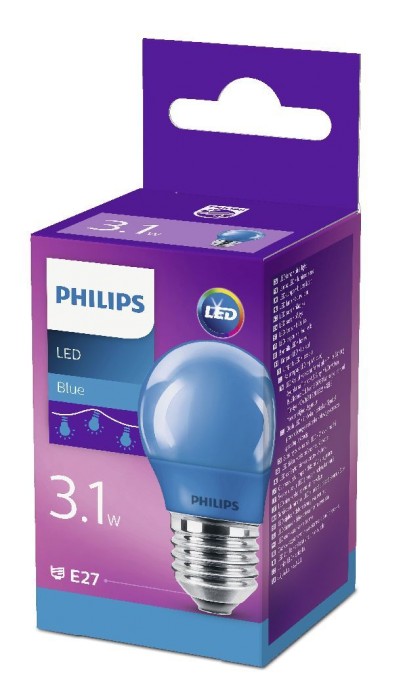 Žymos: philips, e27, g45, led, 3w, 3.1w, melyna, led, lempute, lempa, girlianda, girliandoms, burbuliukas, spalvota