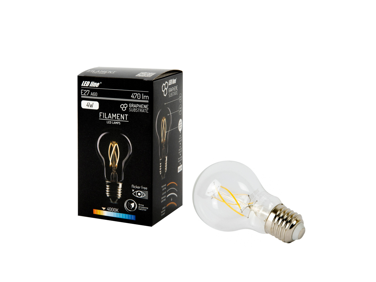 • Lemputė LEDLINE E27 A60 4W 4000K 470lm, filamentinė