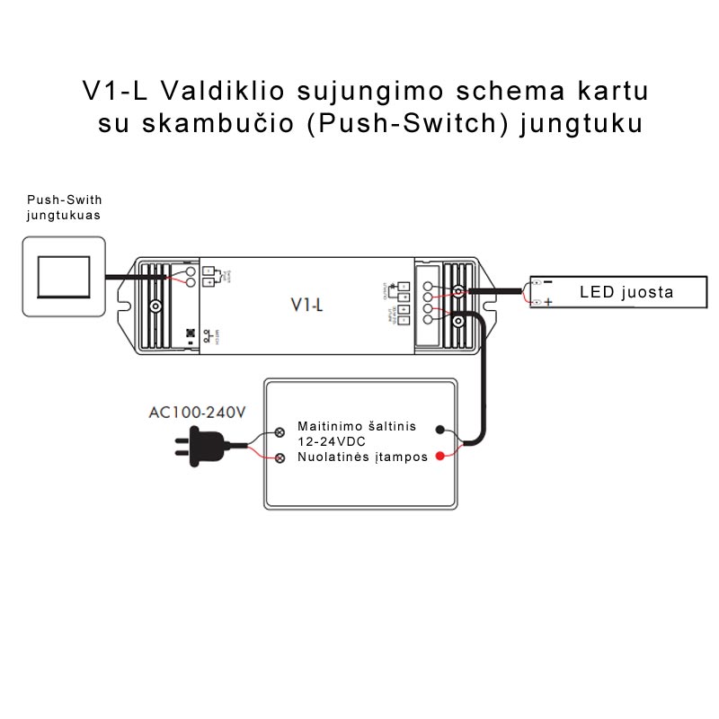 LED juostos valdiklis V1L yra universalus, kaip ir kiti šios serijos LED juostų valdikliai, jie gali veikti su praktiškai visais siūlomais SKYDANCE valdymo pulteliais, be to, šie valdikliai gali būti prijungti prie belaidžių SKYDANCE sieninių jungiklių.