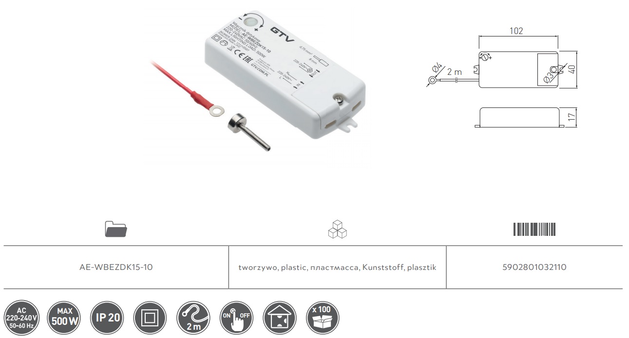 • Baldinis apšvietimo valdiklis GTV AE-WBEZDK15-10