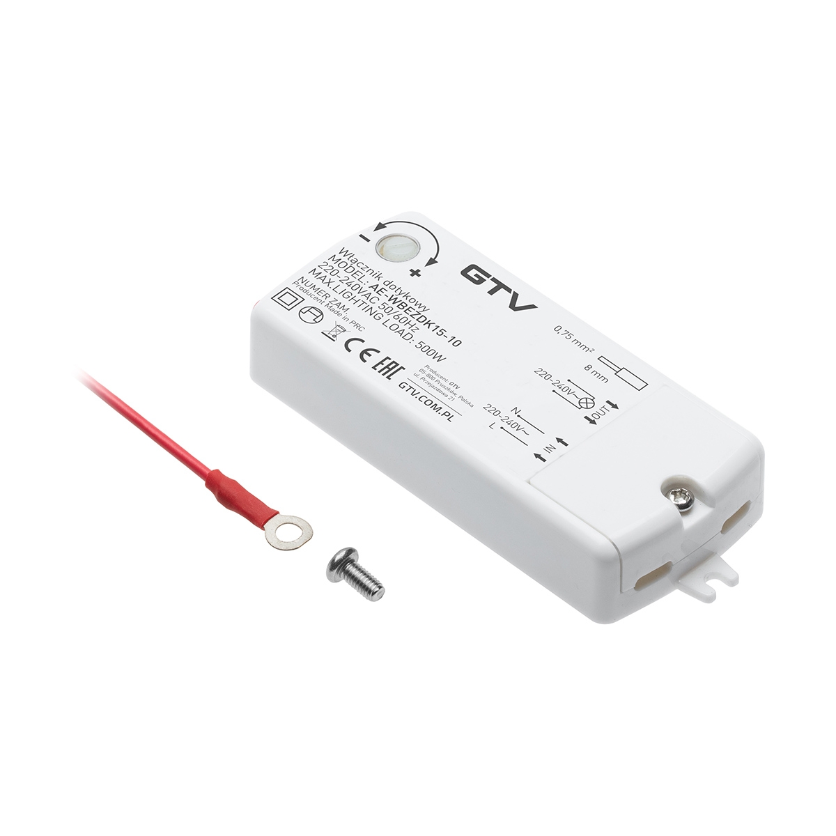 Apšvietimo valdiklis, skirtas valdyti apšvietimo sistemas 220-240V AC dalyje. Maksimali galia - 500W. Valdiklis veikia liečiant metalinę jungiklio dalį (per plokštę suveržiama su signaliniu valdiklio kabeliu), galima reguliuoti valdiklio reakcijos į lietimą intensyvumą.