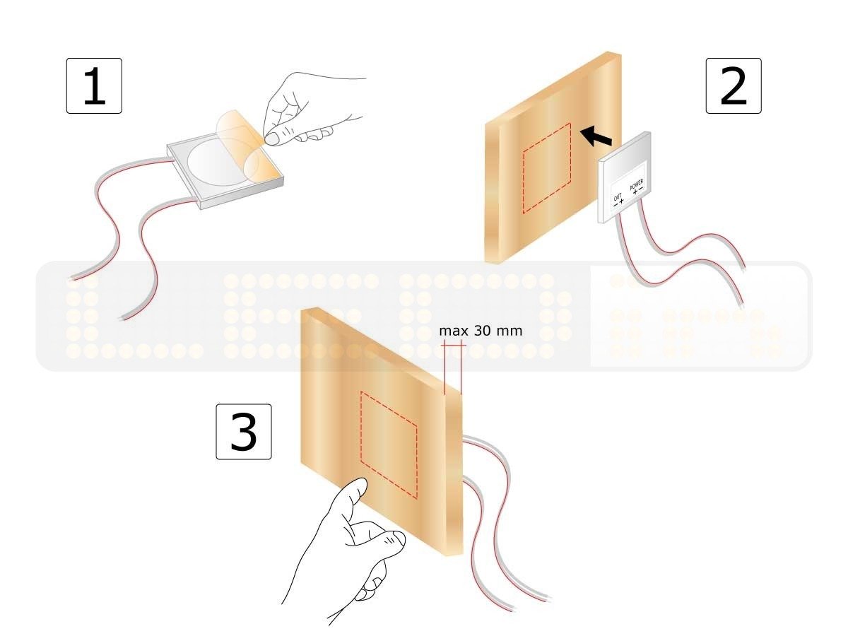 Apšvietimo valdiklis, skirtas valdyti apšvietimo sistemas 12V DC dalyje. Maksimali galia - 50W. Valdiklis veikia liečiant (ar judinant ranką ties plokštės paviršiumi) baldinę plokštę (tinka naudoti su plokštėmis iki 40 mm), kurios antroje pusėje yra pritvirtintas valdiklis. Naudojantis valdikliu apšvietimo sistemą galima įjungti/išjungti (trumpu rankos perbraukimu) arba reguliuoti apšvietimo intensyvumą (ilgiau palaikius ranką ties valdikliu).