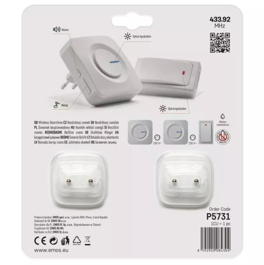 • Belaidis skambutis su 2 imtuvais EMOS P5731 (pilnai autonominis - nereikia elementų)