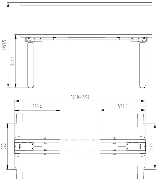 Elektra valdomos reguliuojamo aukščio stalo kojos - stačiakampės, juodos sp. (3 pakopų - 64-129 cm)