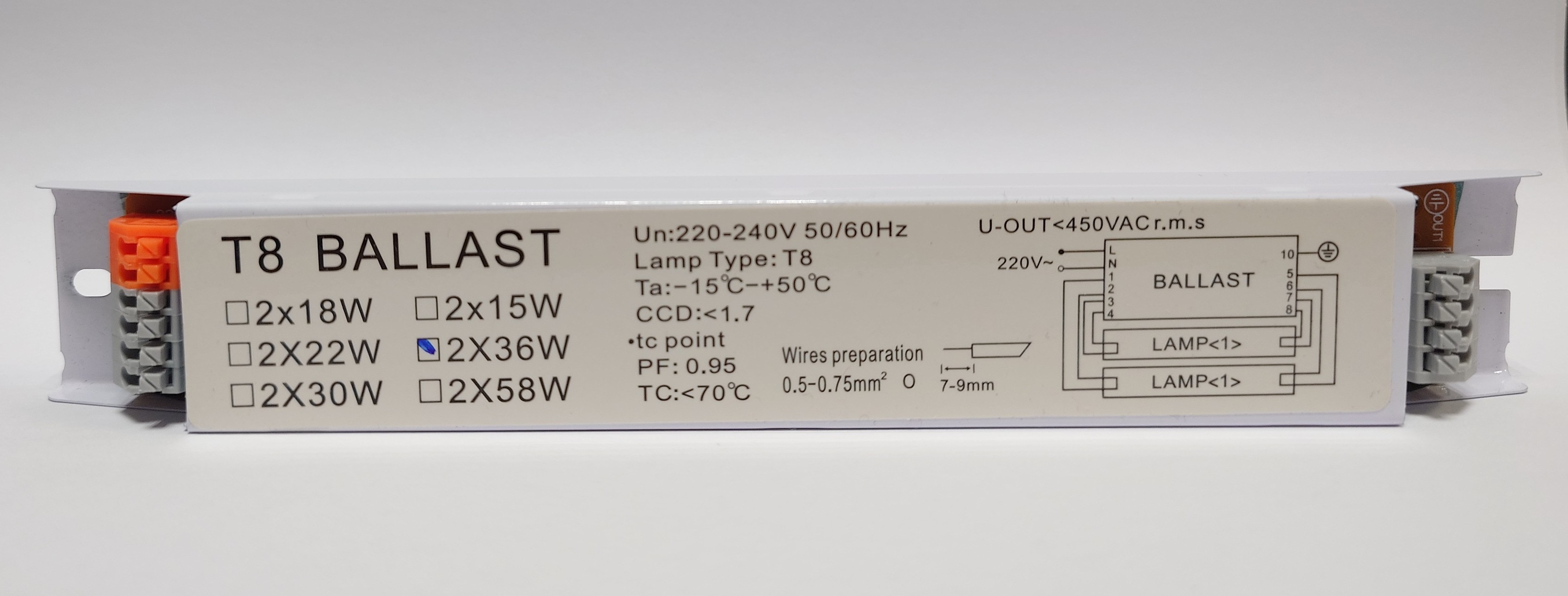 • Elektroninis lempų paleidiklis (balastas) 2x36W