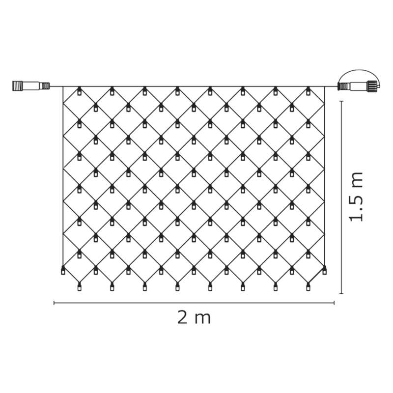 Matmenys Plotis - 2 m, tinklo aukštis - 1.5 m ; akutės 25x25 cm