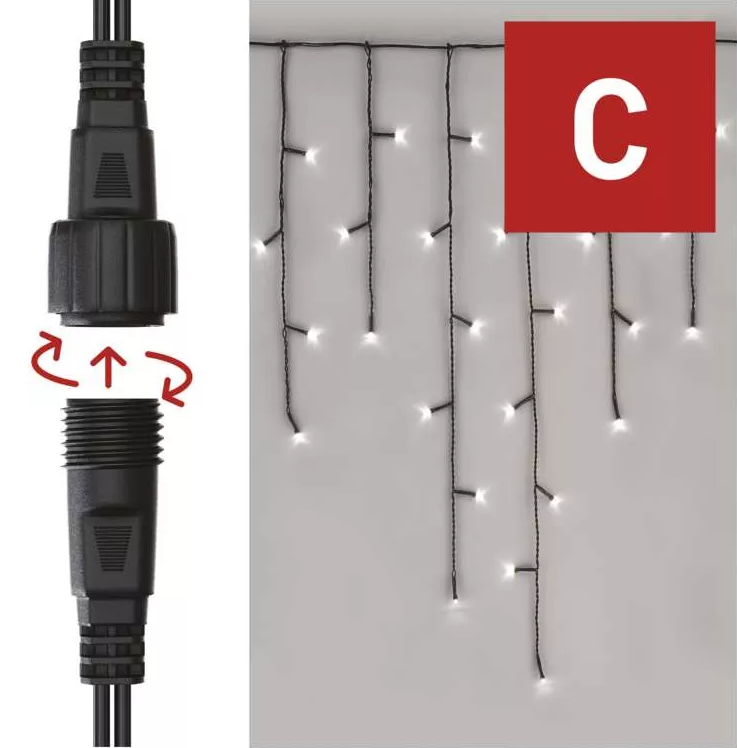 EMOS CONNECT girlianda - varvekliai 100LED 2.5m IP44 šiltai balta / mirksinti šaltai balta D1CN01 / ZY2002