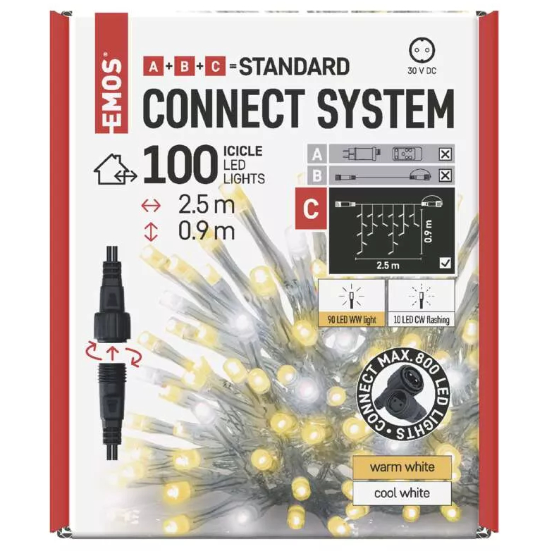 EMOS CONNECT girlianda - varvekliai 100LED 2.5m IP44 šiltai balta D1CW01 / ZY1441