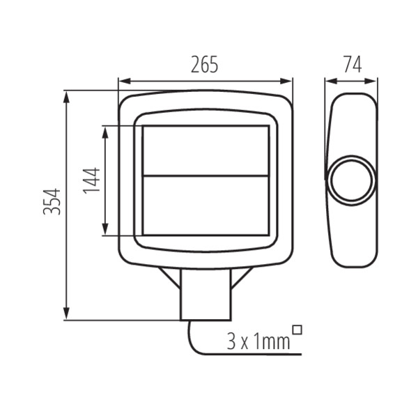 Matmenys 354x265x74 mm