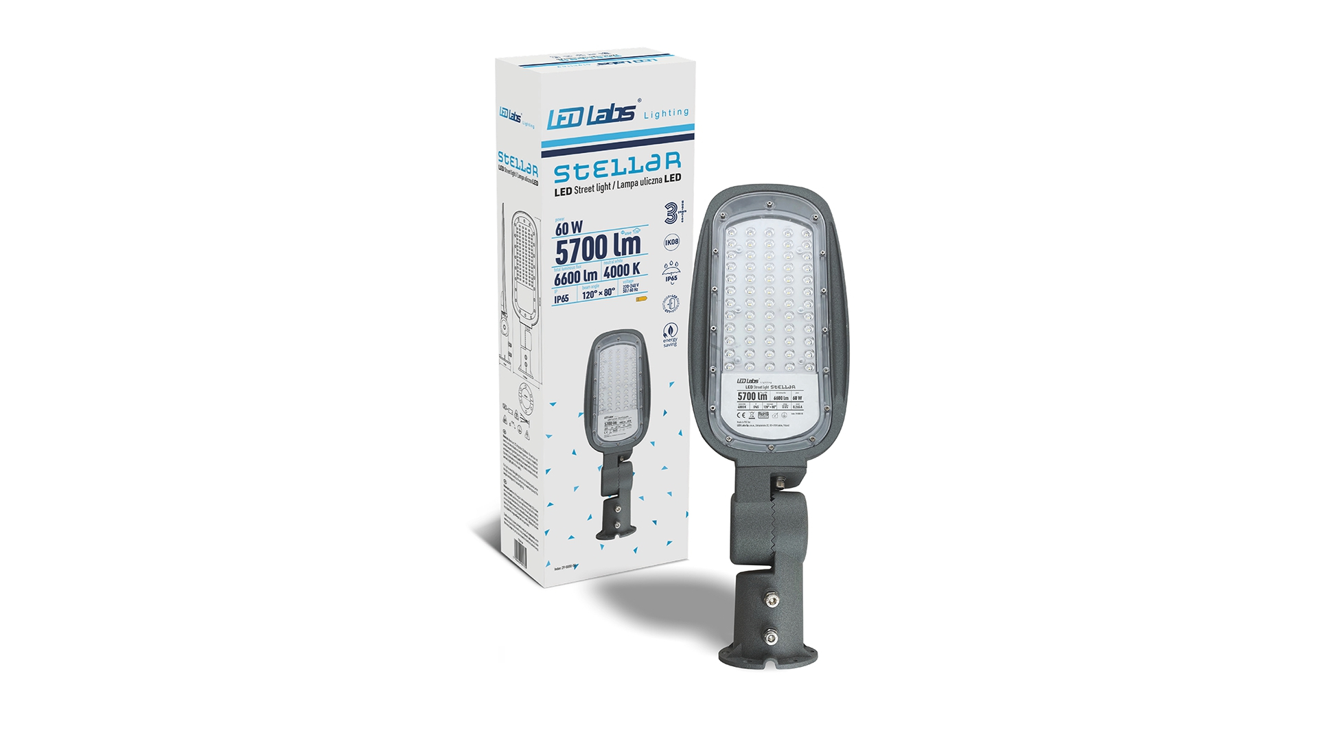 • Gatvės šviestuvas LED LABS STELLAR 60W 4000K 6600lm IP65 - tiekiama pagal užsakymus