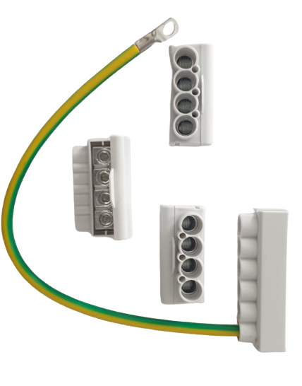 Gnybtų komplektas apšvietimo atramos pajungimui. Rinkinį sudaro: trys 4 kontaktų paskirstymo gnybtai faziniams laidams (AL 10...35mm²; CU 1.5...25mm²; 10Nm užveržimo jėga) ; vienas 6 kontaktų paskirstymo gnybtas įžeminimo sujungimui (AL 10...35mm²; CU 1.5...25mm²; 10Nm užveržimo jėga) ; įžeminimo laidas su antgaliu (16mm², ilgis - 0.35 metro).