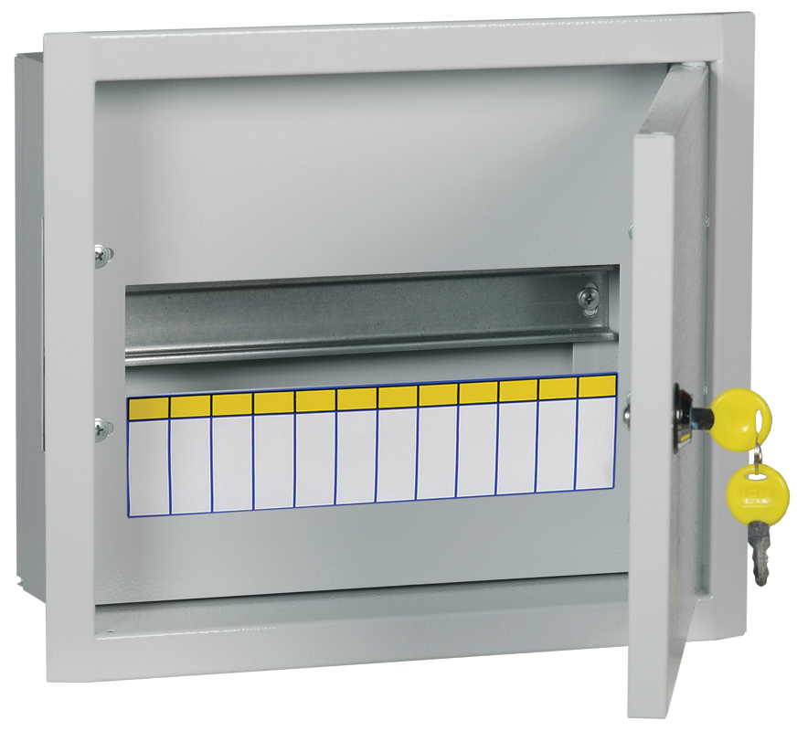 IEK metaliniai paskirstymo skydeliai komplektuojami su spynele bei 2 raktais. Skydai komplektuojami be N+PE šynų.