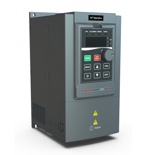 Wecon (Kinija) gamintojo VB serijos dažnio keitiklis trifazio iki 18.5kW variklio valdymui (lengvo tipo apkrovoms - siurbliams, ventiliatoriams - leidžiama naudoti iki 22.0kW galios varikliams). Keičia trifazę maitinimo įtampą į variklio maitinimui skirtą trizafę keičiamo dažnio įtampą.