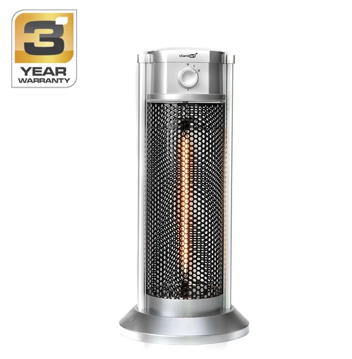 Pastatomas (aukštis su padu - 55.5 cm), komplekte su maitinimo kabeliu. 2 galingumo lygiai (450W/900W). Pridedamas nuotolinio valdymo pultelis įjungimui/išjungimui, veikimo galingumo nustatymui. Nedegina oro ir dulkių.