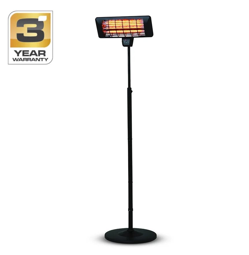 Pastatomas (aukštis su padu - 200 cm), komplekte su maitinimo kabeliu. 2 galingumo lygiai (1000W/2000W). Pridedamas nuotolinio valdymo pultelis įjungimui/išjungimui, veikimo galingumo nustatymui. Nedegina oro ir dulkių.