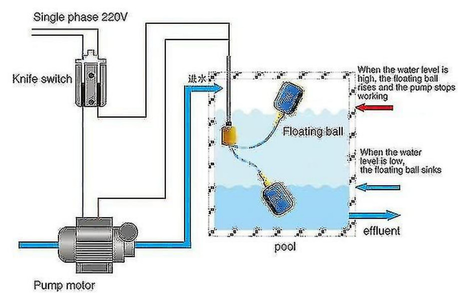 Skirtas siurblių, pompų darbo valdymui atsižvelgiant į rezervuare esančio skysčio lygį. Komplektuojamas su plūdės fiksatoriumi bei 20 metrų ilgio guminiu maitinimo kabeliu. Maksimali perjungimo srovė - 4A induktyvinei apkrovai / 16A varžinei apkrovai. Maksimalus darbinės aplinkos slėgis - 1 bar. Darbinė temperatūra -30...+80°C.