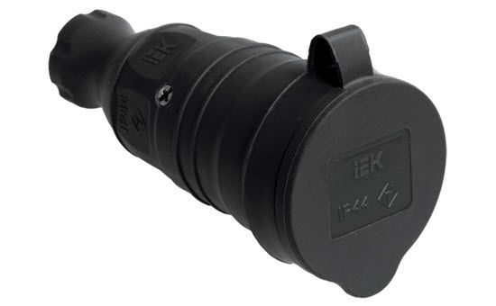 Kištukinis lizdas gumuotas su įž. ir dangteliu juodas IEK