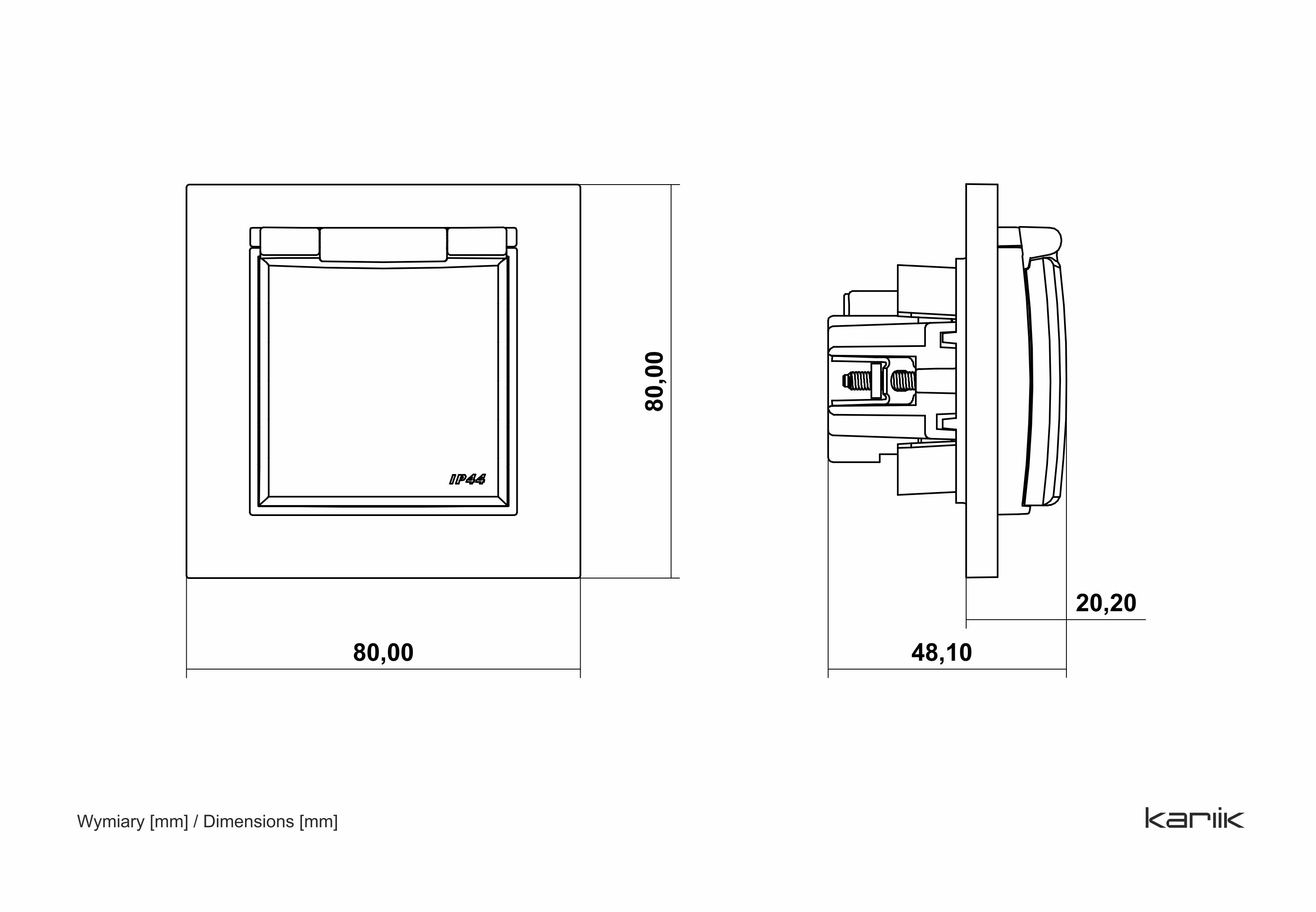 • Kištukinis lizdas su įž., užsklandomis ir dangteliu Karlik MINI, matinės juodos sp.
