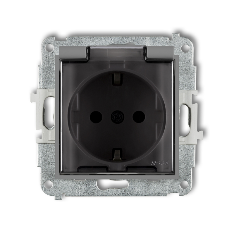 Su užsklandomis - aktualu šeimoms, auginančioms mažus vaikus, norint apsaugoti juos nuo elektros smūgio pavojaus. IP44 apsaugos klasė leidžia šį kištukinį lizdą montuoti drėgnoje aplinkoje. Viršutinis lizdo gaubtelis - iš pusiau skaidraus juodos spalvos plastiko.