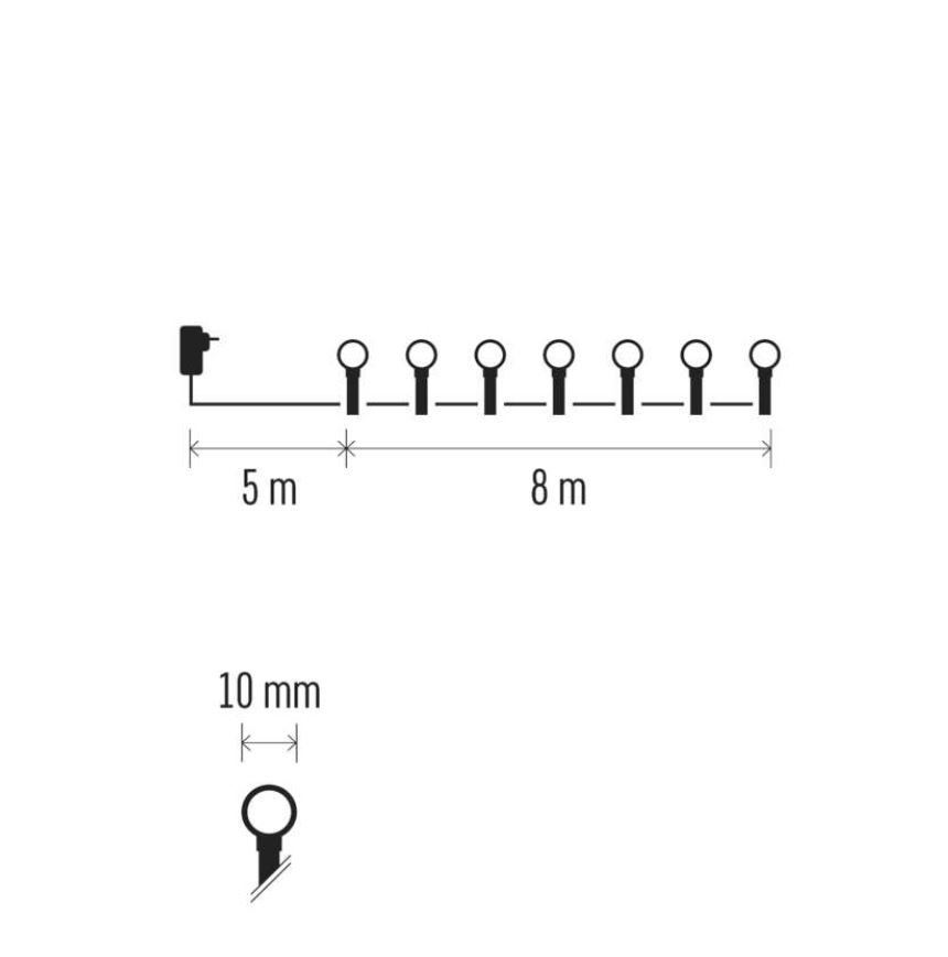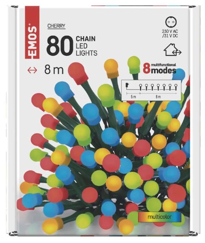 • EMOS CHERRY girlianda 80LED, 8m, įvairiaspalvė, 8 mirksėjimo programos, D5AM05