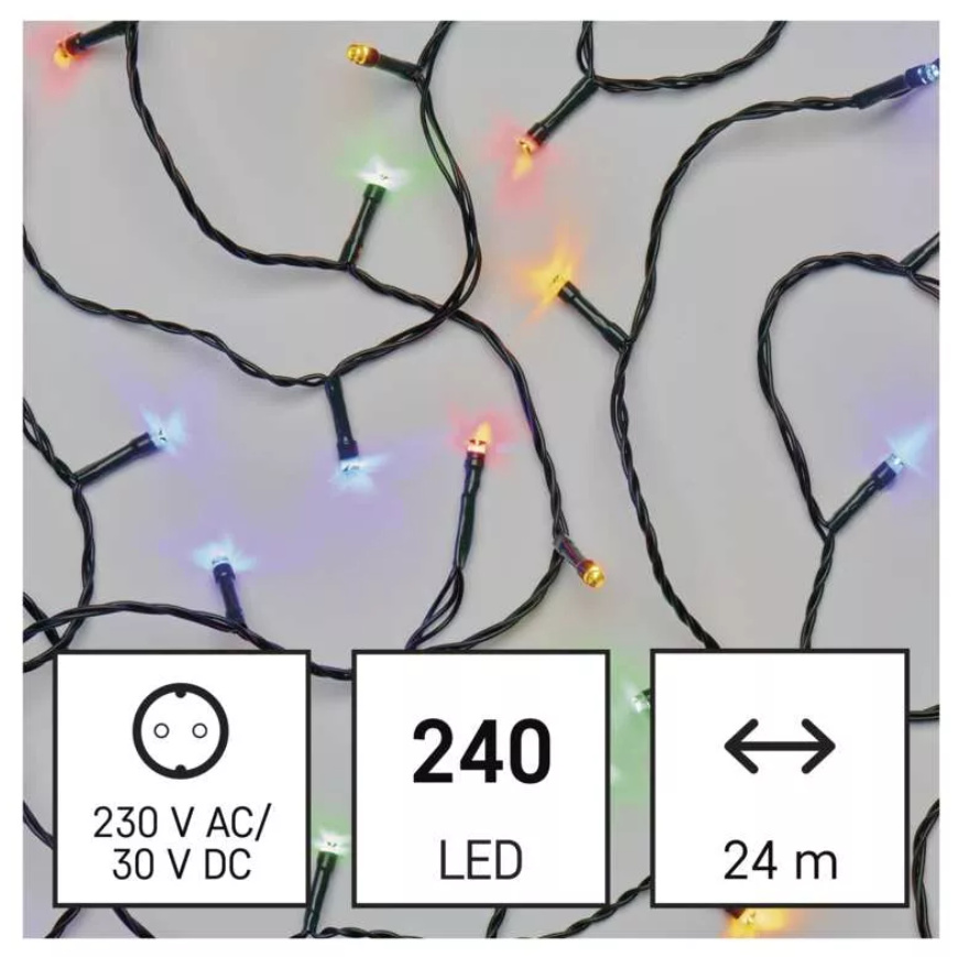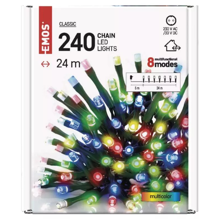 EMOS girlianda 240LED, 24m, įvairiaspalvė, 8 mirksėjimo programos, D4AM10