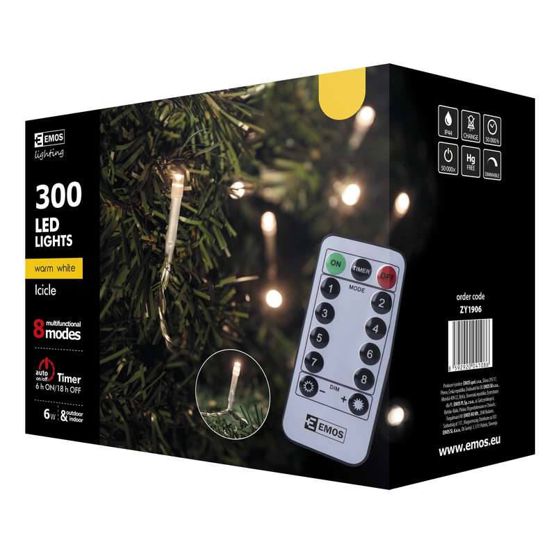 • EMOS girlianda - RF pulteliu valdomi varvekliai 300LED 5m IP44 šiltai balta ZY1906