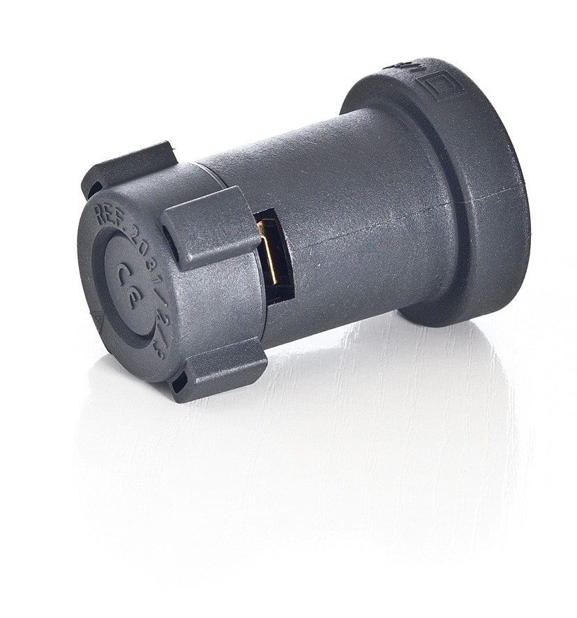 Lempos lizdas, itin tinkamas girliandų gamybai. Lizdas naudojamas su specialiu plokščiu kabeliu (mūsų prekės kodas 08501), lizdas į grandinę prijungiamas prakertant kabelio gyslų izoliaciją lizde esančiais specialiais kontaktiniais gnybtais, užfiksuojant lizdą ant kabelio - instaliavimui nereikia jokių įrankių, gaunama patikima hermetiška jungtis.