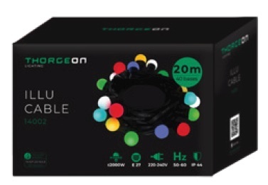 Sodo girlianda THORGEON, 50m, 100xE27, juodas guminis kabelis