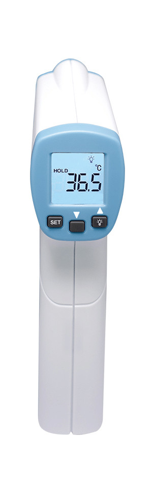 Bekontaktis kūno temperatūrai skirtas matuoti IR termometras. Matuojamos temperatūros diapazonas: +32.0 ... +42.9 °C. Išmatuotai temperatūrai viršijus +37.2°C, termometras išduoda garsinį perspėjimo signalą. Rekomenduojamas temperatūros matavimo atstumas - 5-10 cm.