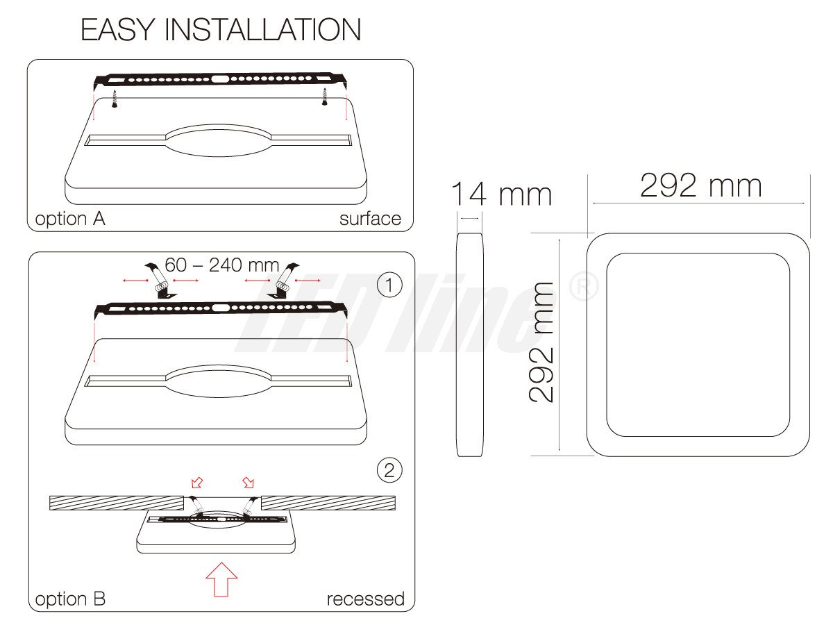 LED panelė LEDLINE EASYFIX 18W 2700K įleidžiama/virštinkinė kvadratinė