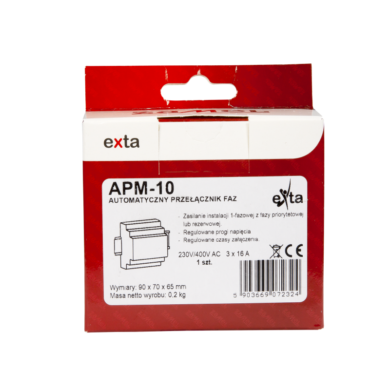 Fazių perjungimo relė APM-10 skirta maitinti vienfazius 230V AC įtampos imtuvus (bendra apkrova - iki 16A), užtikrinant jų maitinimą įvairiais scenarijais.