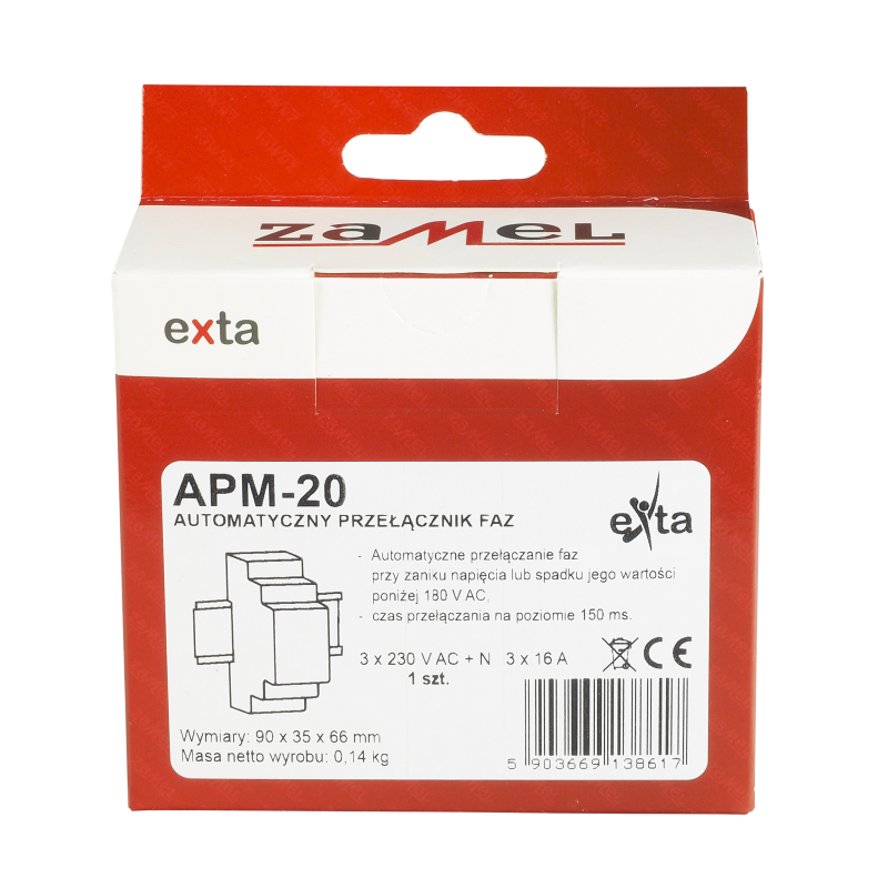 Fazių perjungimo (įtampos kontrolės) relė Zamel APM-20 1F (1x16A)