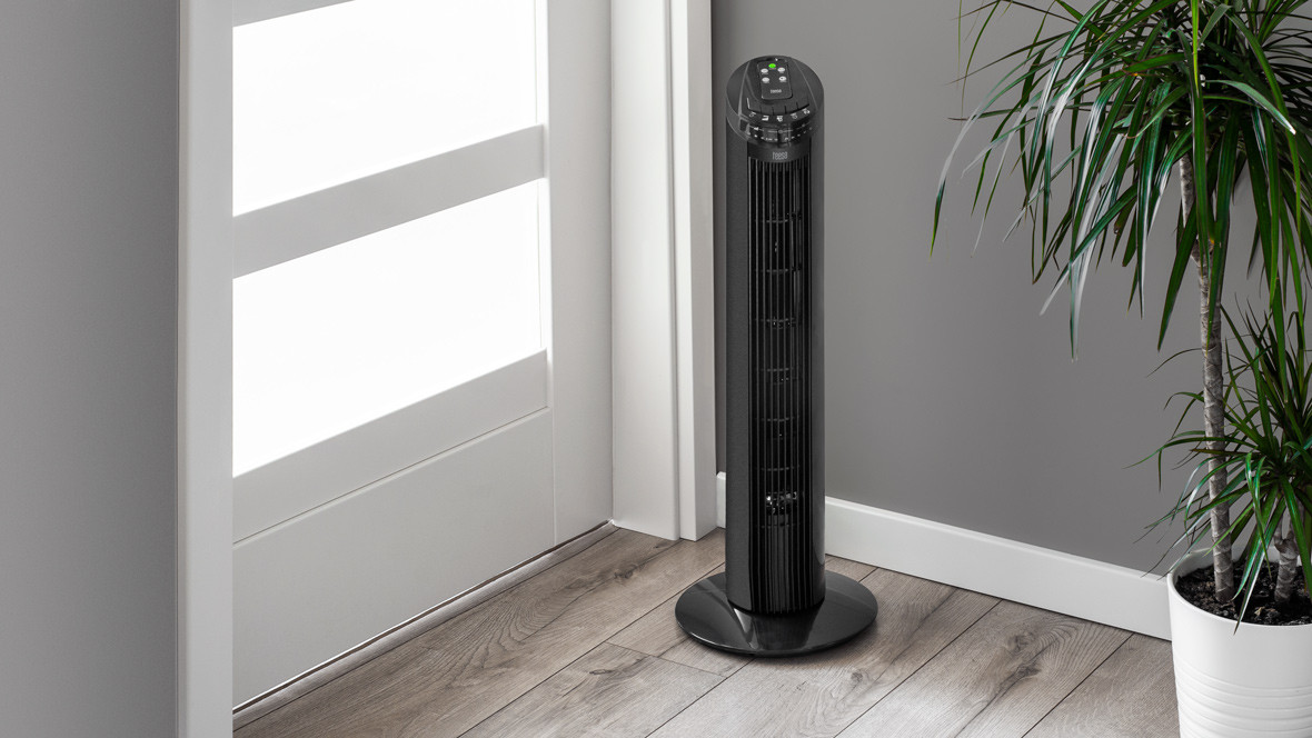Korpusas - plastikas. Juodos spalvos. Aukštis - 740 mm. Idealiai tinkamas variantas mažoms erdvėms, kur tradiciniam pastatomam ventiliatoriui vietos nepakanka.