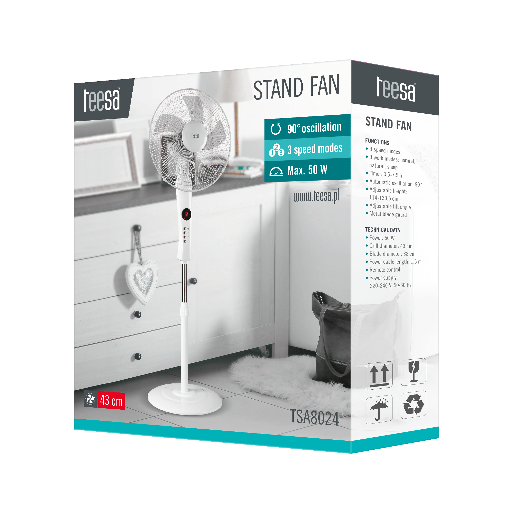 • Pastatomas ventiliatorius Teesa TSA8024 su nuot. valdymo pulteliu 50W ⌀430mm