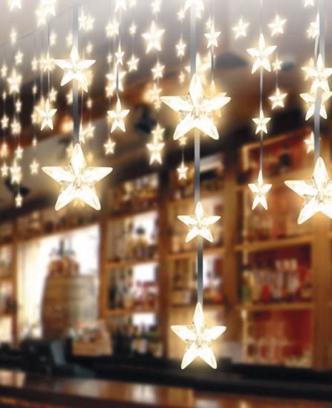 • POLAMP girlianda - žvaigždučių užuolaida 2x0.7m 100LED IP20 šiltai balta