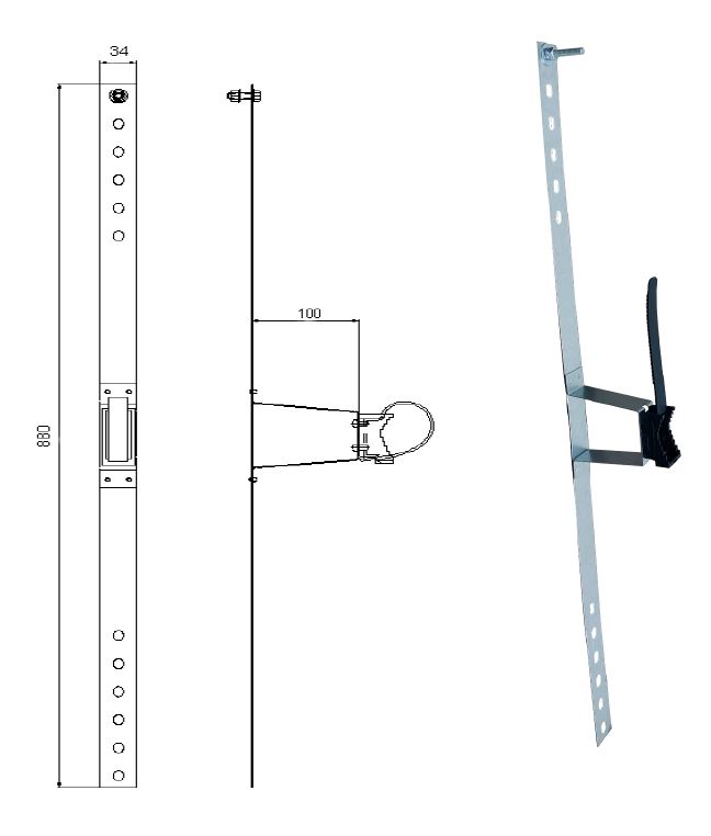 Iš karštai cinkuoto plieno pagaminta universali apkaba, skirta iki 50 mm diametro kabelių, vamzdžių tvirtinimui ant įvairaus aukščio gelžbetoninių atramų.