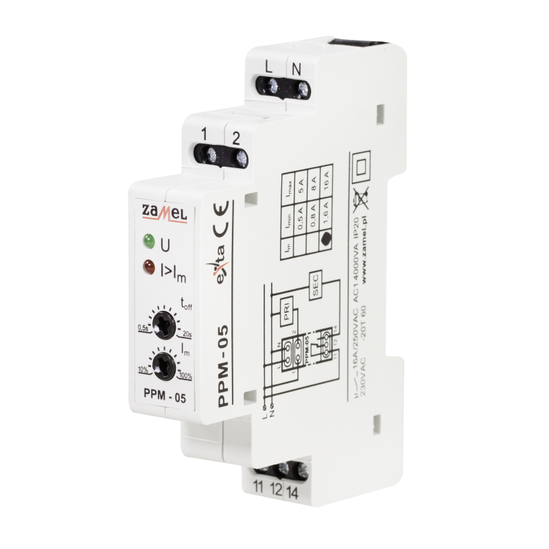 Prioriteto relė Zamel PPM-05/16 1F 1.6-16A (histerezė - 0.8A)