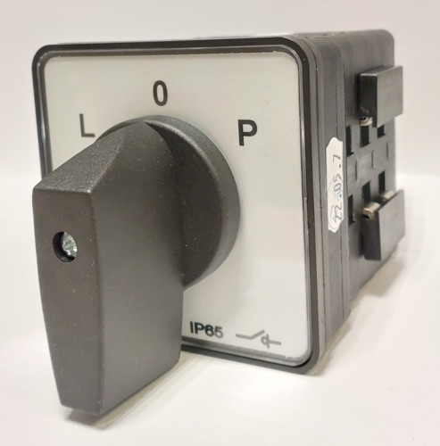 Reversinis perjungiklis leidžia keisti variklio sukimosi kryptį perjungiant kirtiklio padėtis. Vidurinė padėtis („0“) - išjungta. Rekomenduojamas naudojimui su 45kW nominalo varikliais. Gamintojas - Spamel (Lenkija).