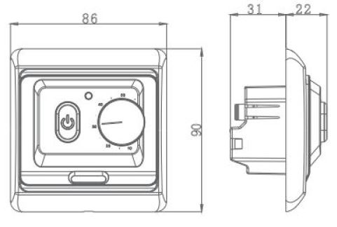 Grindiniam šildymui valdyti skirtas mechaninis termostatas. Komplekte yra NTC tipo grindinis temperatūros jutiklis.