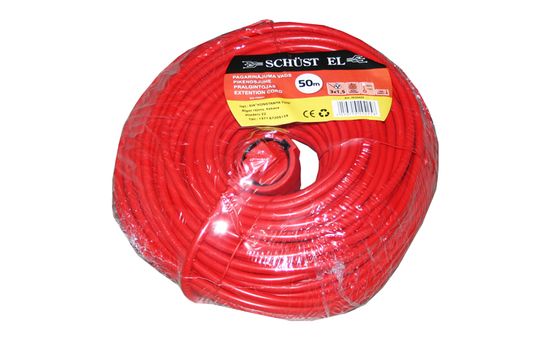 Su "Schuko" tipo įžeminimu. 3x1.5mm² kabelis leidžia naudoti ilgiklį su apkrova, siekiančia iki ~3500W. Gamintojas - SCHUST EL (Latvija).
