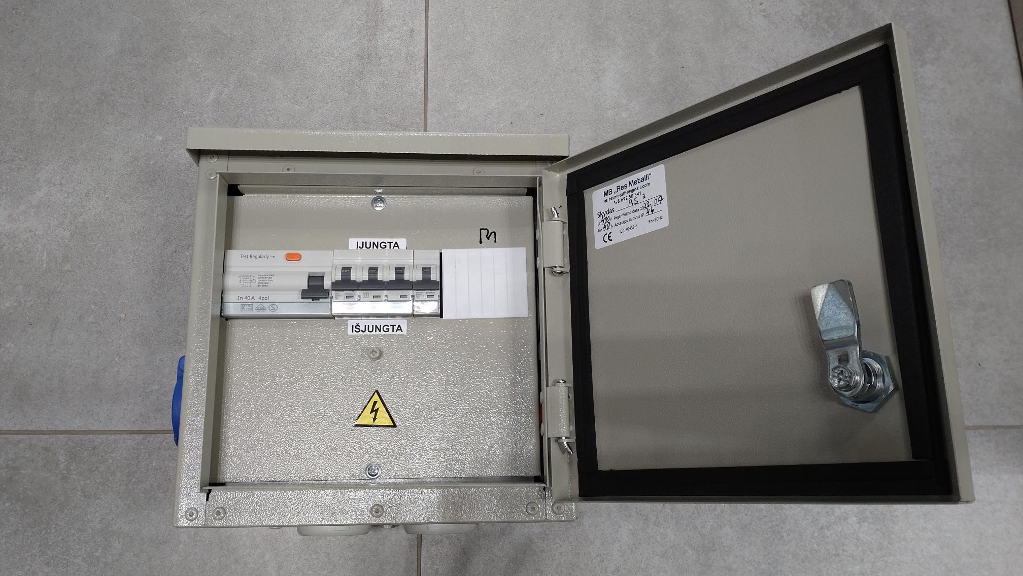 Skirtas statomo objekto prijungimui prie elektros tinklo. Su apsaugine plokšte, apsaugančia nuo prisilietimo prie įtampą turinčių skydo dalių. Pagaminta Lietuvoje.