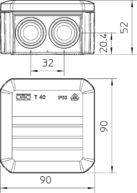 • Paskirstymo dėžutė T40 90x90x52 su sand.
