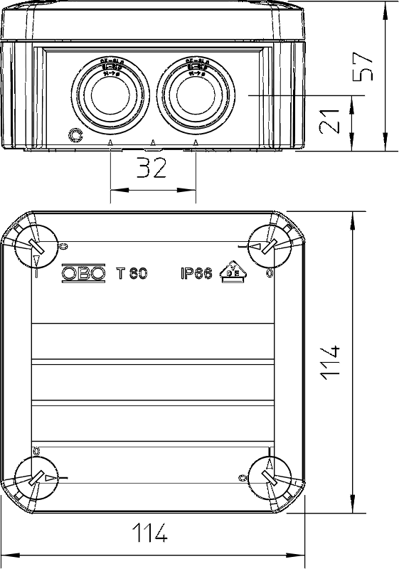 Paskirstymo dėžutė T60 114x114x57 su sand.